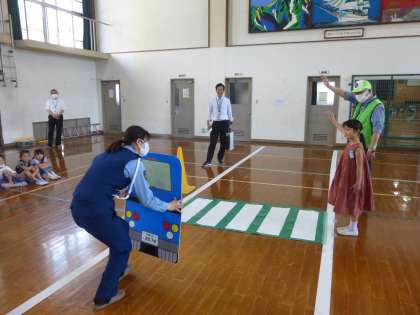 最後には、体育館に設置した道路をつかって、実際に一人ずつ体験学習も行いました。