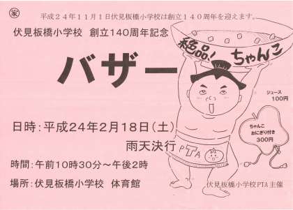 140周年に向けて,2月18日(土)にPTA主催によるバザーを行います。