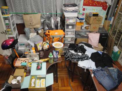 日用品や衣類です。新品同様のものが多く,掘り出し物ばかりです。