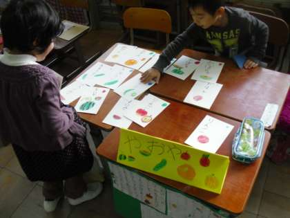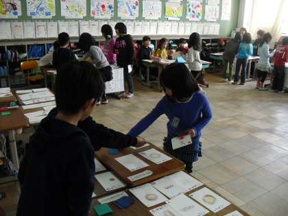 国語科の学習で,おみせやさんごっこをしました♪お店の看板やちらし,品物カードなど,みんなで協力して準備したおみせやさんです。