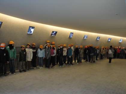 ホワイエを通り,客席へ。伏見板橋小学校の座席は最前列の中央でした。