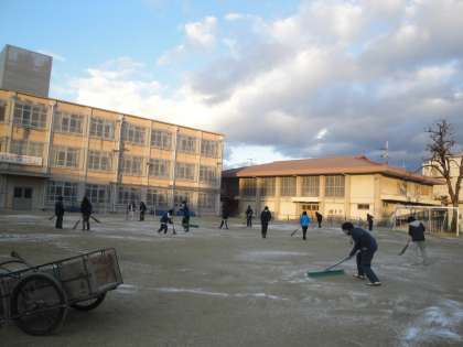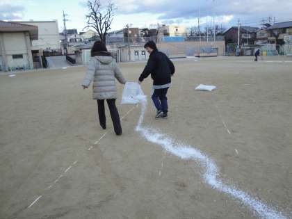 教員研修会終了後,協力して凍結防止剤を運動場に撒きました。これで,中間ランニングや体育の学習時に,よりよいコンディションで活動できることでしょう。