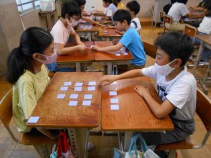 季節ごとに行われる各地の行事が書かれたカードを見て発表しています。