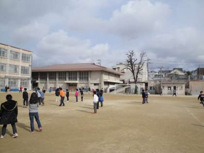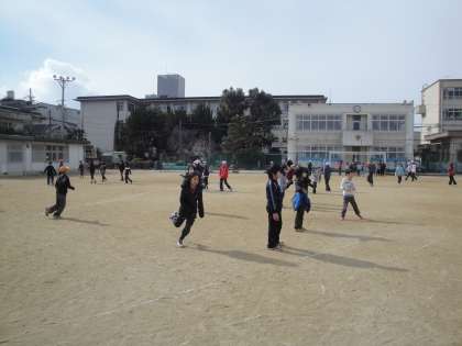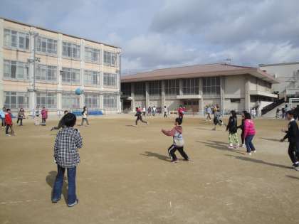 運動場では,高学年児童が元気にボール遊びや追いかけっこをしていました。
