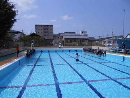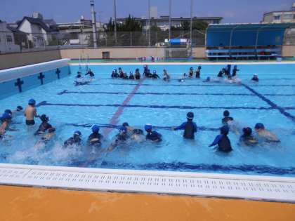 1年生は、プールを使用する時のルールやバディで安全確認することなどを丁寧に学んでいました。