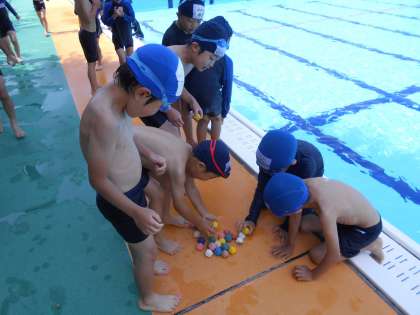 「宝さがし」ゲームをすると水に抵抗ある子も楽しそうにしています。