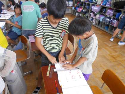 まずは一人で挑戦し、できた子から互いに確認しながら進めています。