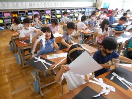 ギザギザやまん丸など思い思いに切って、できた形を見せ合っていました。
