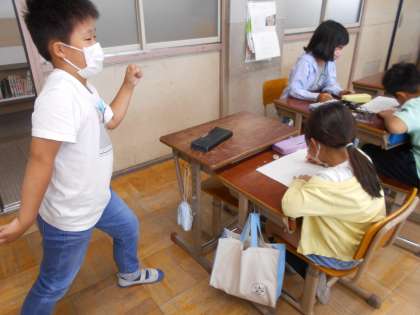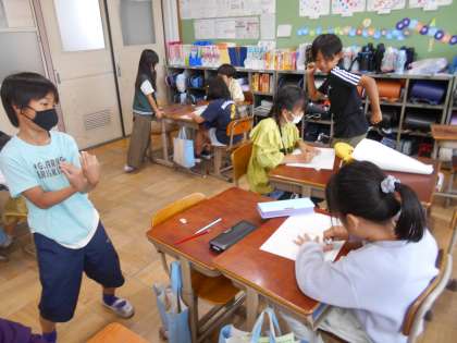自分のイメージをもちながら、友だちにポーズをとってもらっていました。