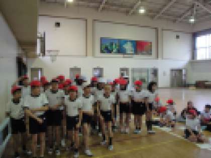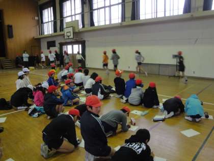 外はあいにくの雨。体育館において,ペアになっての15分間走をしました。誰一人歩かずに,自分のペースで完走できました。