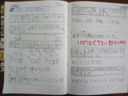 表から直径と円周との関係を読み取り,円周と直径が比例関係にあることを理解しました。