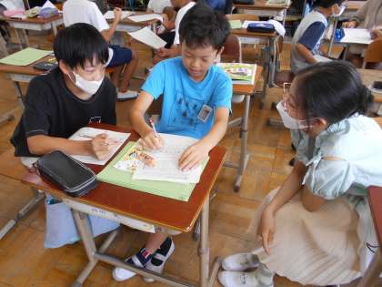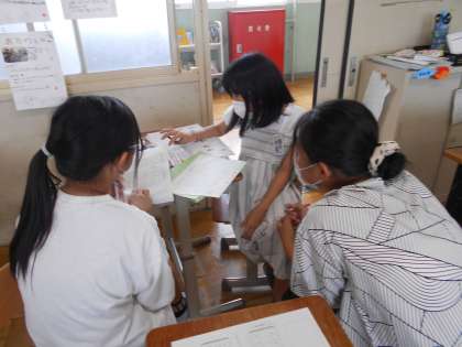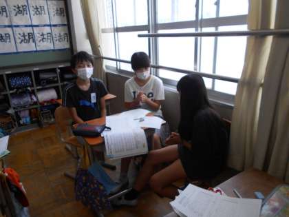 グループに分かれてボイスアンサンブルに取り組んでいます。