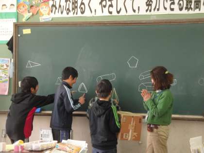 ブラックボックスの中にいろいろな柱体の実物を用意して,実際の柱体を触ってみました。その特徴を感じながら,どんな柱体か考えました。