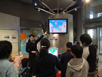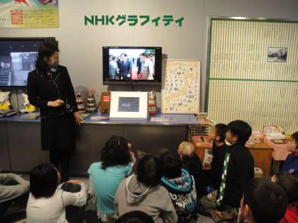 そして,再び1階へ戻りました。そこでは,撮影の秘密を教わったり,子どもたちが生まれた当時の出来事をまとめた映像を見せてもらったりしました。