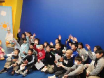 わくわくスタジオでは,「クロマキー」という放送のしくみを使ったテレビの中の世界を体験しました。