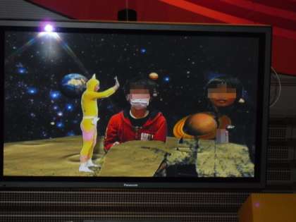 実際に放送されているキャラクターと共演したり,クロマキーを体験したりして,自由時間を過ごしました。