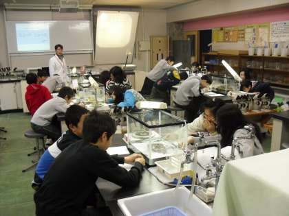 水槽で動き回るイモリに初めは恐がっていた子どもたちも、実験が進むにつれて自分から触るようになりました。「こんなにじっくり見るの、初めて!」と楽しそうに観察していました。