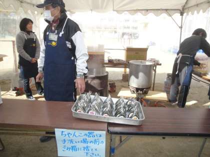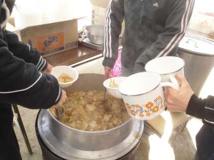 大好評につき,午後1時過ぎには300食完売しました。中には,容器持参でお持ち帰りをするお客様もおられました。