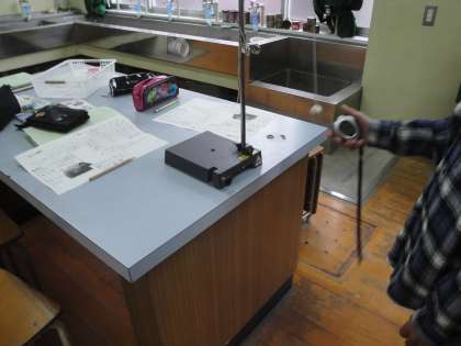 振り子の重ささを変えて,振り子が往復する時間を調べました。