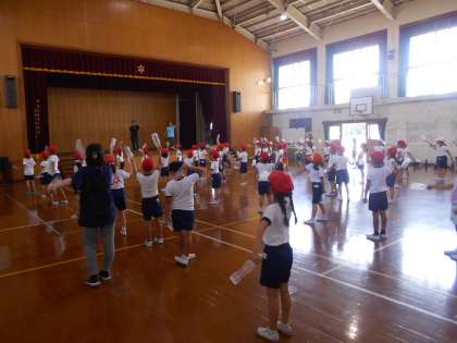運動会で行う団体演技の練習中でした。
