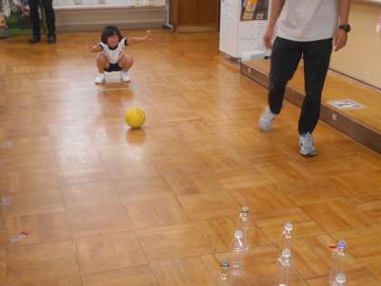 ボウリングゲームを通して、倒れたピンの数を競っていました。