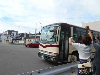 出発式を終え,バスに乗車し出発しました。