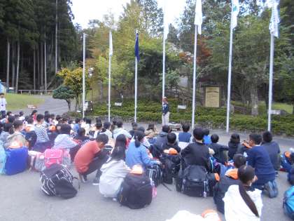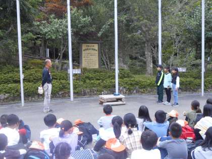 花背山の家の職員さんの話をしっかり聞いています。