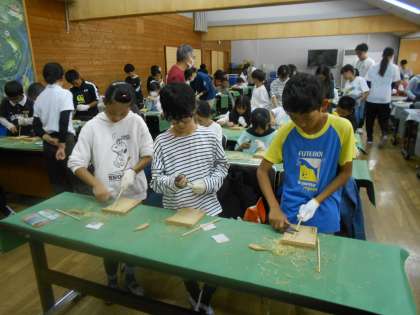 初めてナイフを使う子も多いようでしたが、自分だけのお箸を一生懸命作っています。