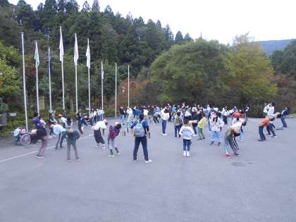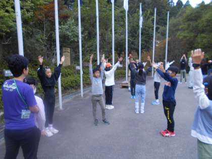 朝のつどいでラジオ体操を行いました。