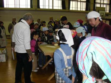 講師の方のアドバイスを活かしながら,うどん打ちに挑戦しました。