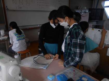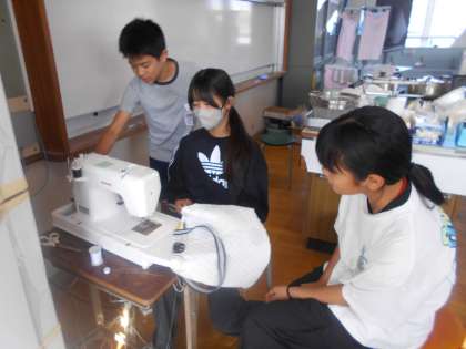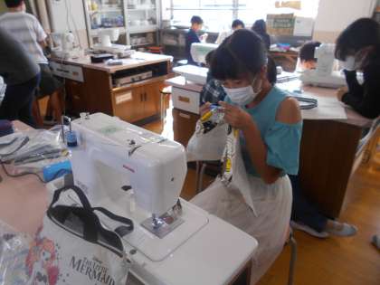 同じ時間に家庭科室では、6年生がミシンを使ってトートバックを作っていました。