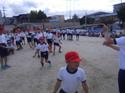 大縄跳びで遊んでいる子もたちも増えているだけあって、グループによっては上手に跳び続けていました。