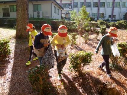 どんぐりや まつぼっくりを 楽しそうに拾っていました。