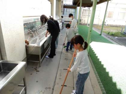 たて割りグループで自分たちが集まる教室や特別教室を掃除しました。