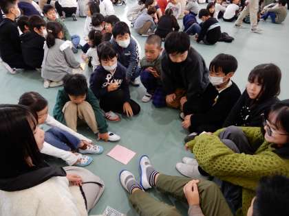 発表を聞いた感想や自分だったらどうするかなと、たて割りグループで交流しました。