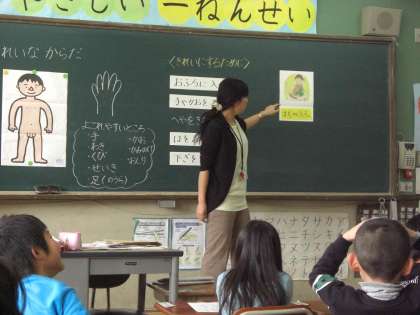 学活の保健の時間です。体の中で 汚れやすいところはどこかを知り,清潔にしておく方法を話し合いました。