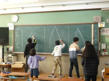 2組が教室で 「黒板ゲーム」