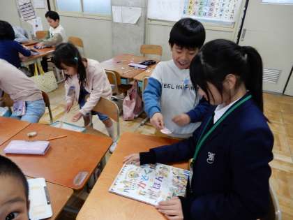 図工の手伝いをしてもらったり休み時間に一緒に遊んでもらったりしています。