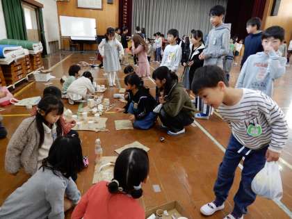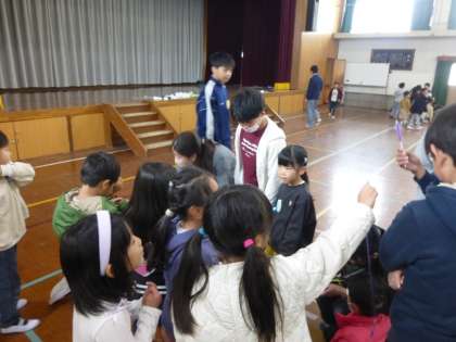 中間休みは、上の学年の子たちもやってきて1年生が考えたゲームを園児と一緒に楽しみました。