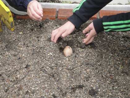 たねいもの芽を観察し,植えつけをしました。