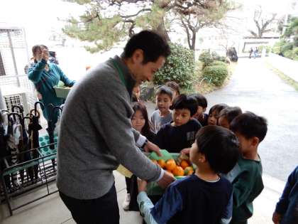 そのお礼として、ゆり組さん来てくれて幼稚園で育ったみかんを届けてくれました。