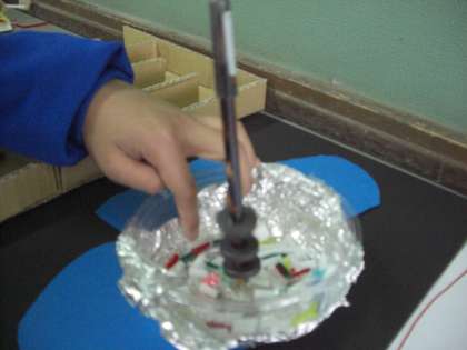 今日はその発表会。ひきつけ合ったり、しりぞけ合ったりする性質を上手に使っていろいろなおもちゃができました。