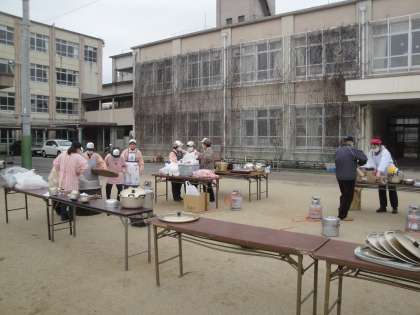 準備の様子です。炊き出しの一つ一つの作業はとても丁寧でした。