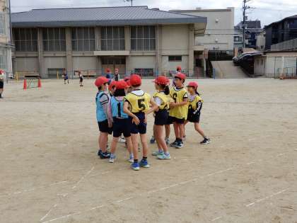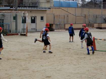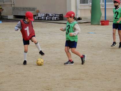 簡単なボール操作や攻めや守りの動きを工夫しながらゲームを楽しんでいました。