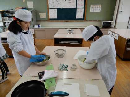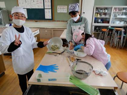 みんなで餃子を作っていました。