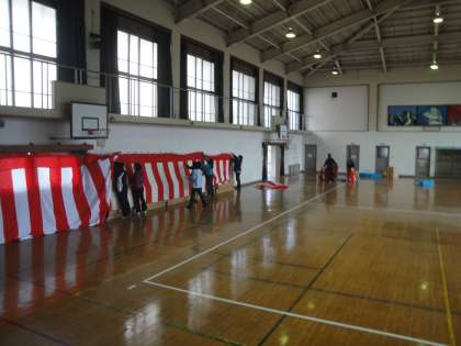 明日の入学式に向けて,式場準備を教職員で行いました。