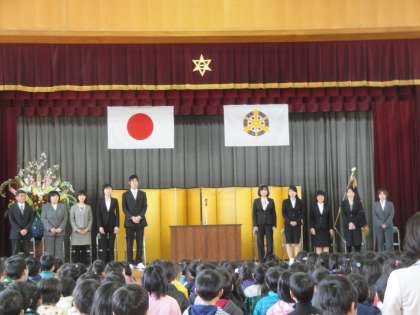校長先生から1人ずつの紹介があり,着任者からも挨拶を行いました。