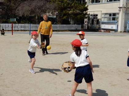 縄跳びや総合遊具、大谷選手からのグローブを使ってのキャッチボールなど、1年生の体育はグループごとに選んで取り組んでいました。