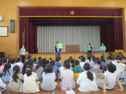 先生の紹介を聞いたり、学年で頑張っていきたい話を