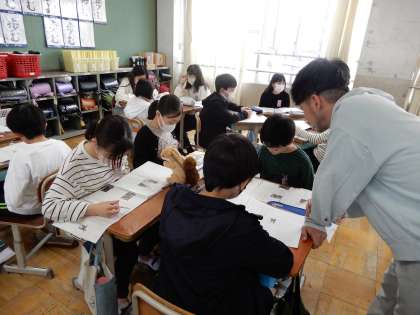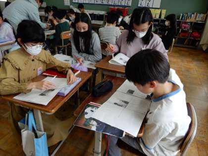 登場人物「律」と「周也」の心情を考えた後、グループで交流していました。